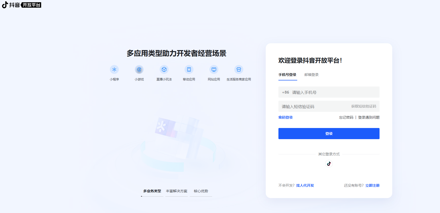 - 1.使用已注册邮箱或手机号登录新抖音开放平台(https://developer.open-douyin.com/)