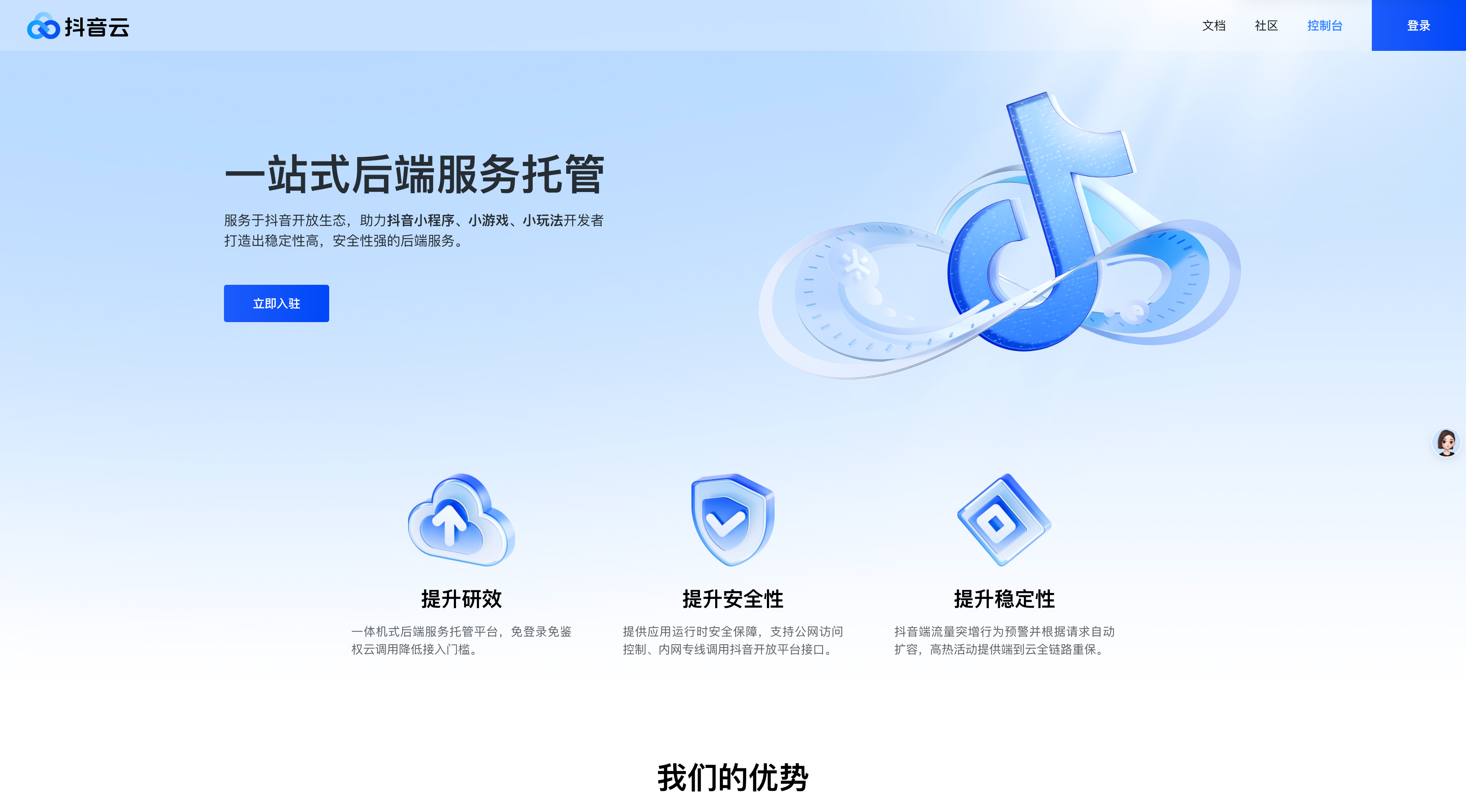 5.应用已开通抖音云,用户在抖音开放平台、抖音云同时有权限,则可点击进入抖音云详情页。