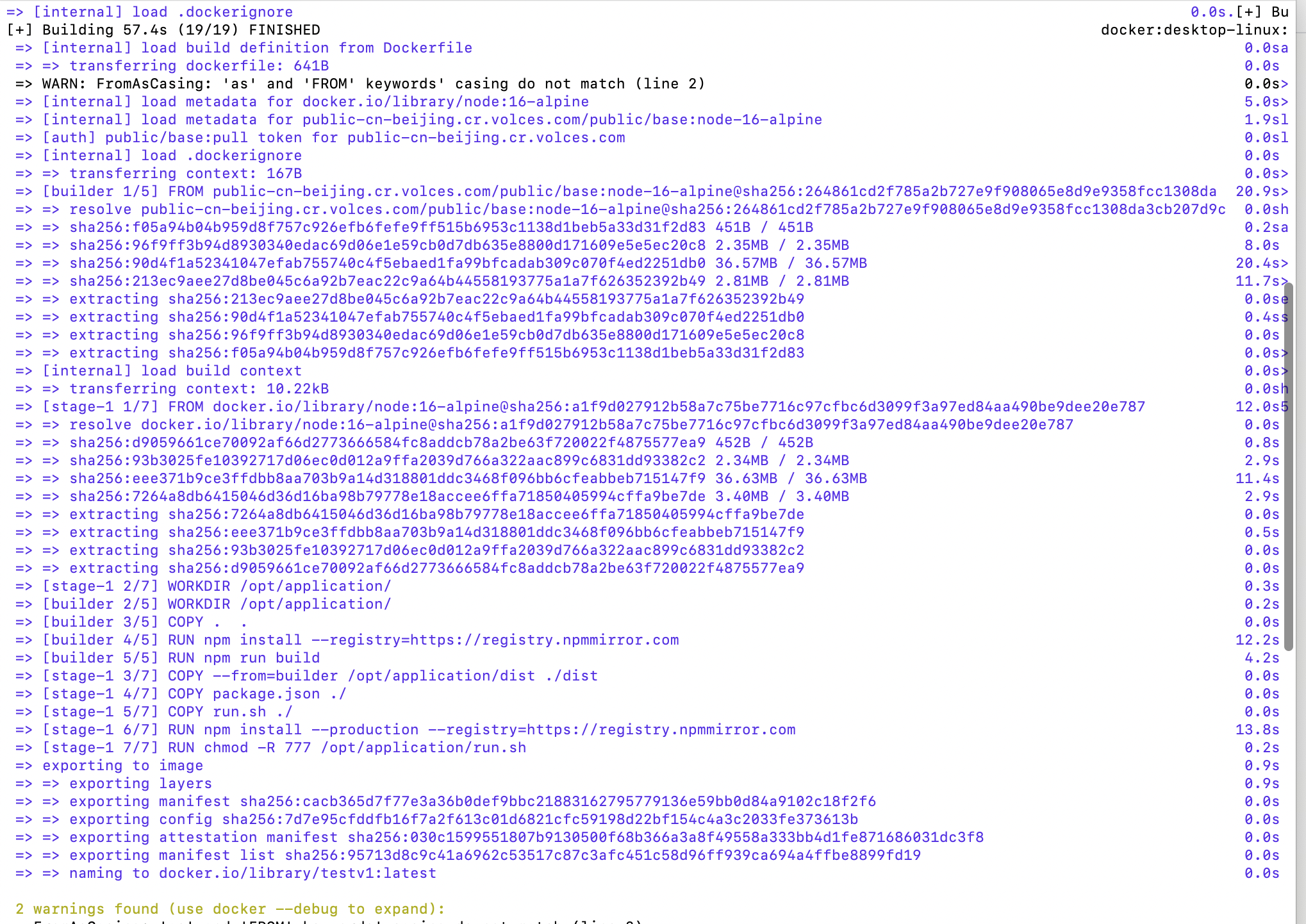 本机电脑确保安装 Docker 相关能力,进入模板本地路径,按照如下命令构建名为 testv1 的 docker 镜像。