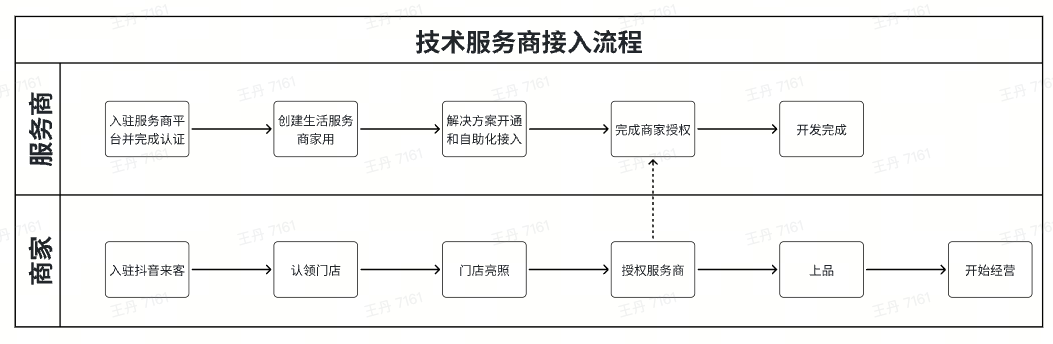 适用于未入驻抖音服务商平台已入驻但未创建正式应用的技术服务商,按照以下流程完成入驻并开展业务。
