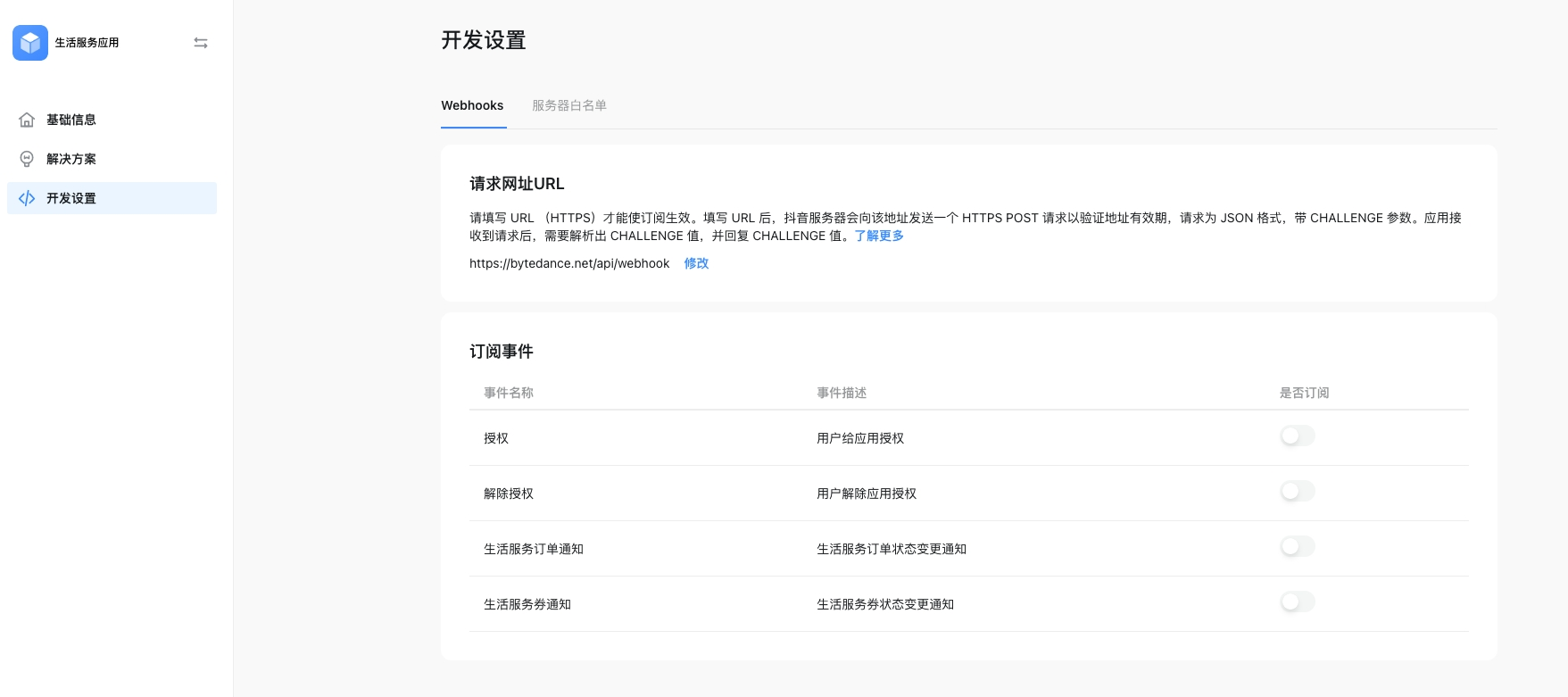 在对接的解决方案、能力文档中查看需要接入的 WebHooks 接口。