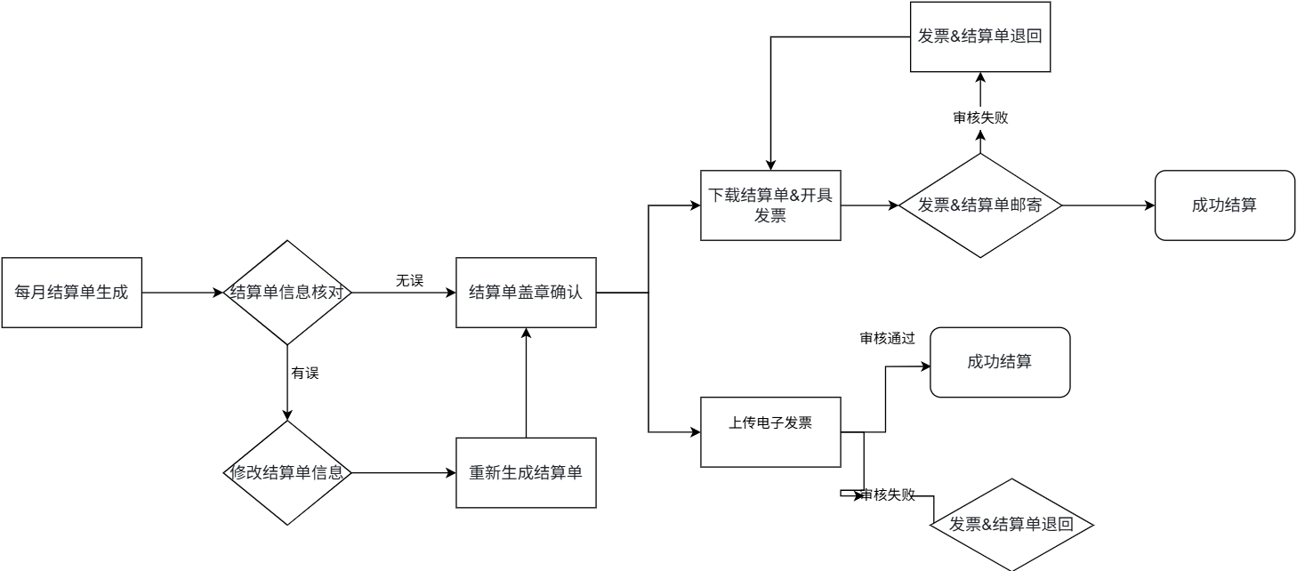 - 2.一般情况下,系统会在每月开始的 10 个工作日内生成上月结算单,若遇节假日等特殊情况,系统将顺延生成结算单。