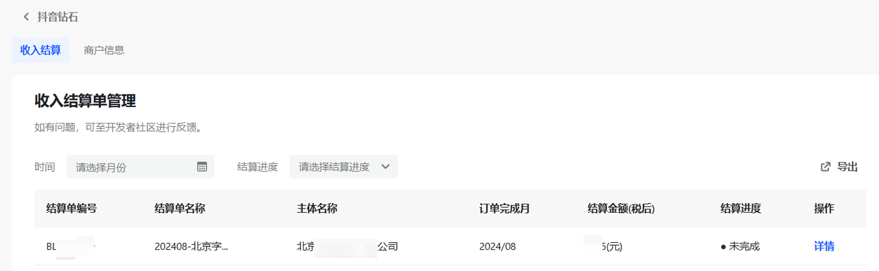 结算单生成后,开发者可在指定后台查看结算单相关信息并进行核对。