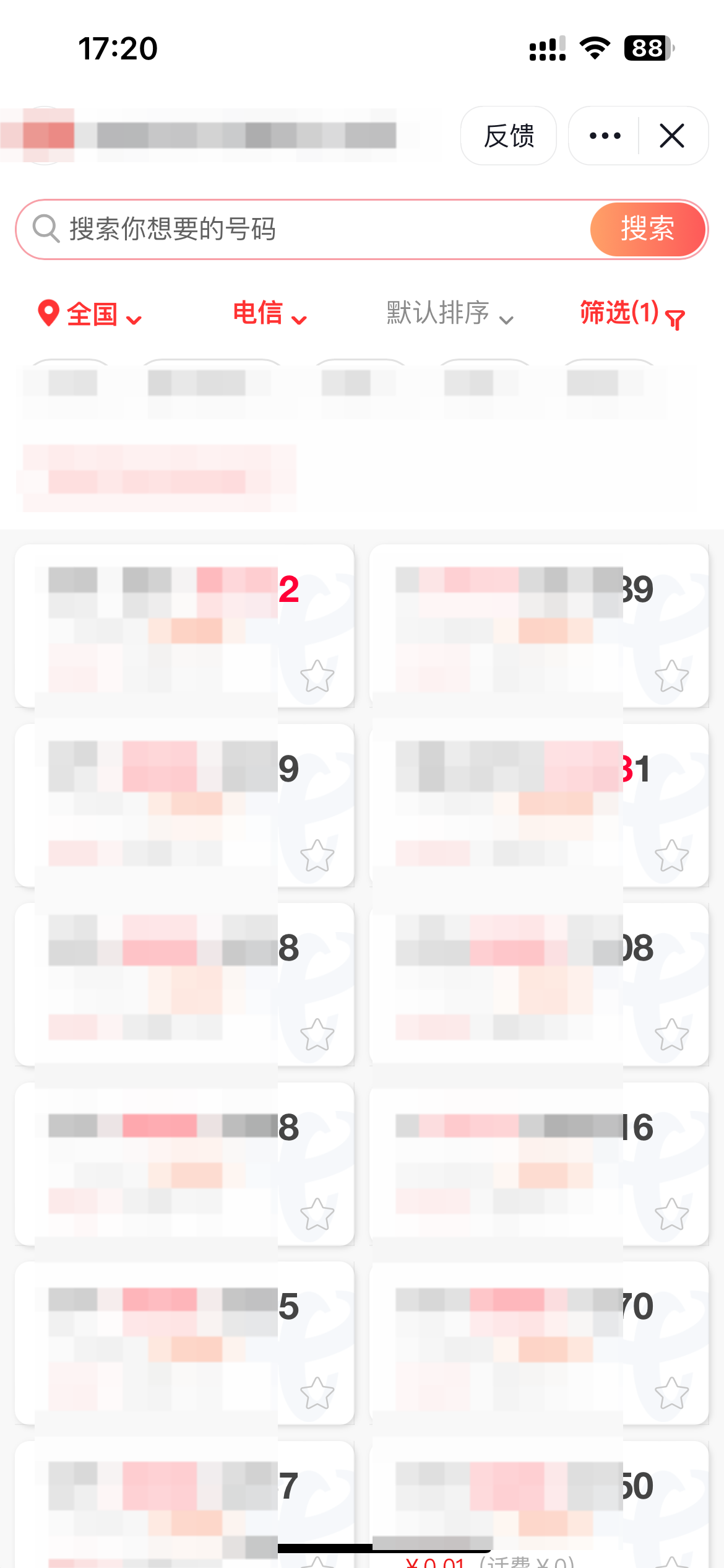 搜索关键词:xx卡自选号码 | 搜索关键词与配置页提供的服务或内容无关、落地页无实质功能。 页面无自选号码服务,且页面无实质功能,无法满足用户搜索和使用诉求,建议丰富小程序服务内容。 | 搜索关键词:xx卡自选号码 |