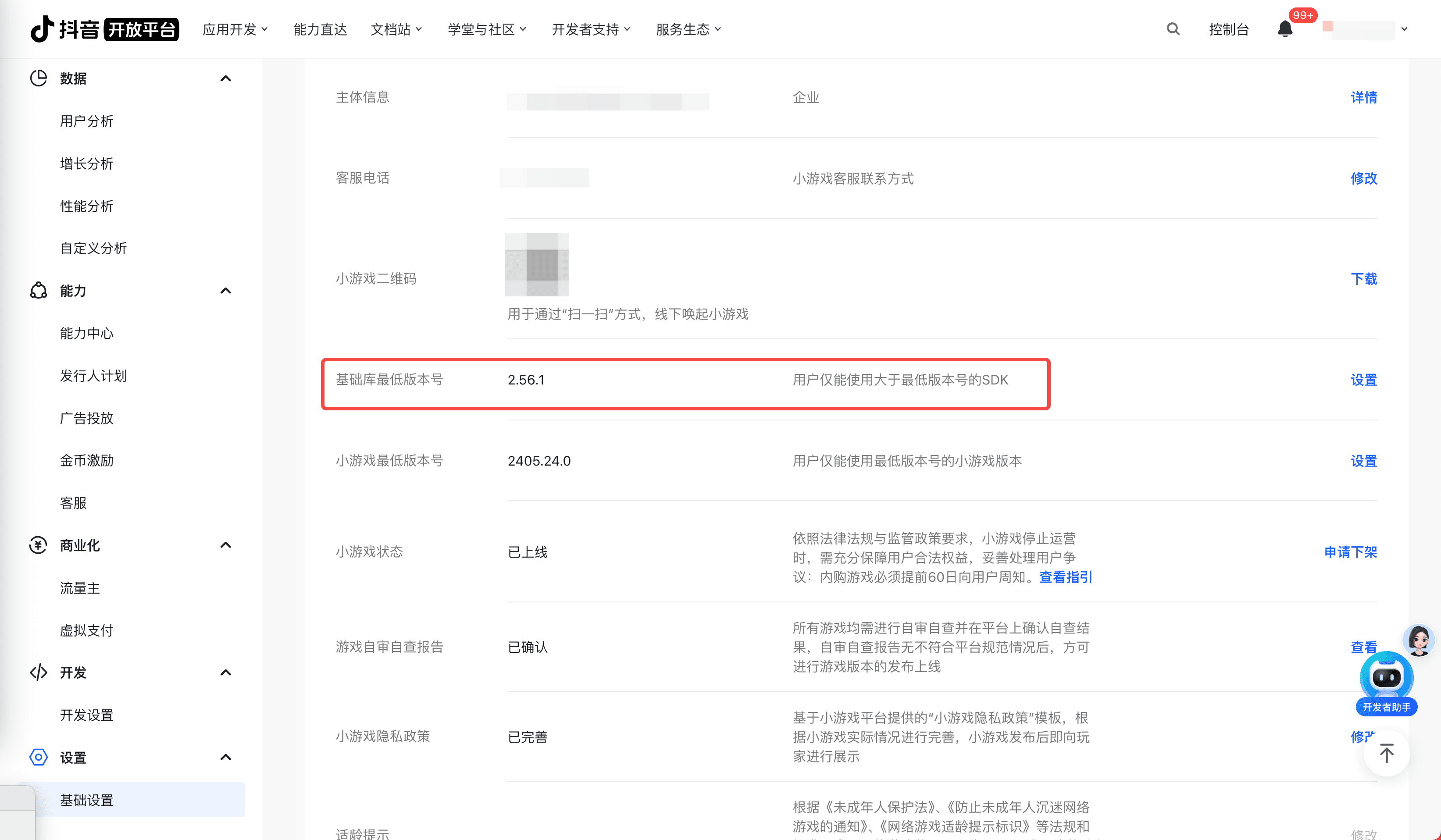 字节小游戏目前迭代比较快,各个 app 之间差异也比较大,开发者需要做好兼容工作,避免因为在低版本上使用了一个不兼容的 api 而出现体验问题。一般可以通过版本号比较、api 存在判断、tt.canIUse 四种方式进行兼容处理。另外上线发布的时候也可以选择支持小游戏的最低基础库版本。