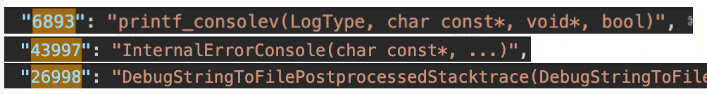 解压后为一个 json 文件,保存了函数 ID 到函数名的映射,例如上面的报错前三个函数可查表还原为: