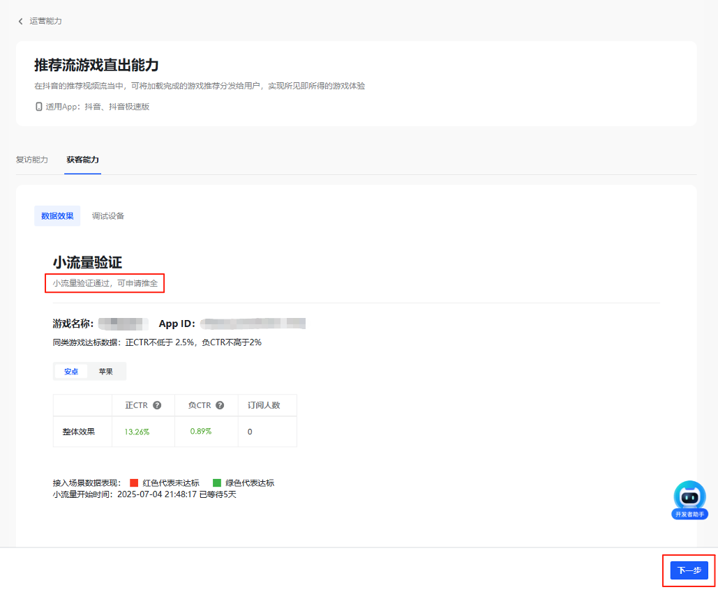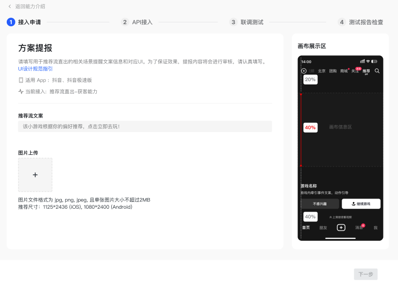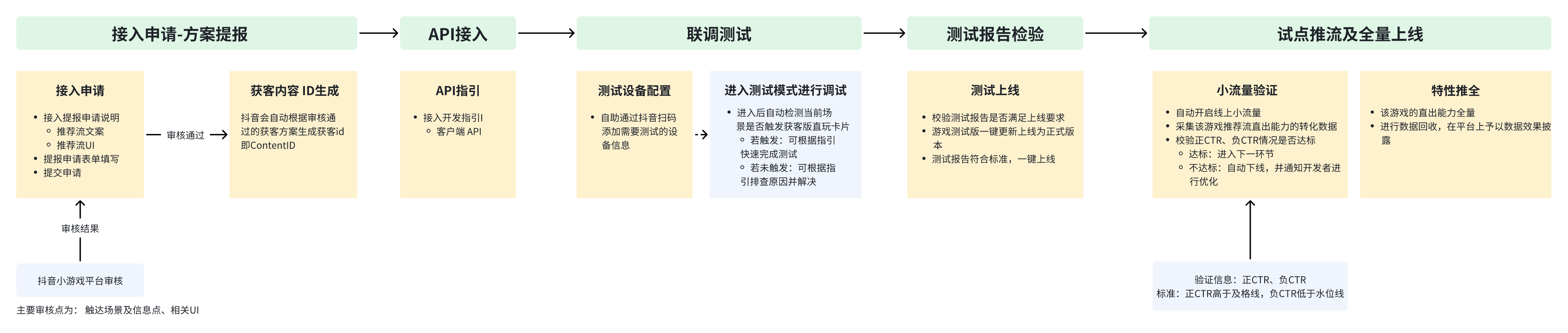 推荐流直出能力,是抖音为小游戏开发者打造的场景化用户召回&获客的解决方案,其中获客版服务于拉新获客场景,整体接入流程需约 2~5 天。