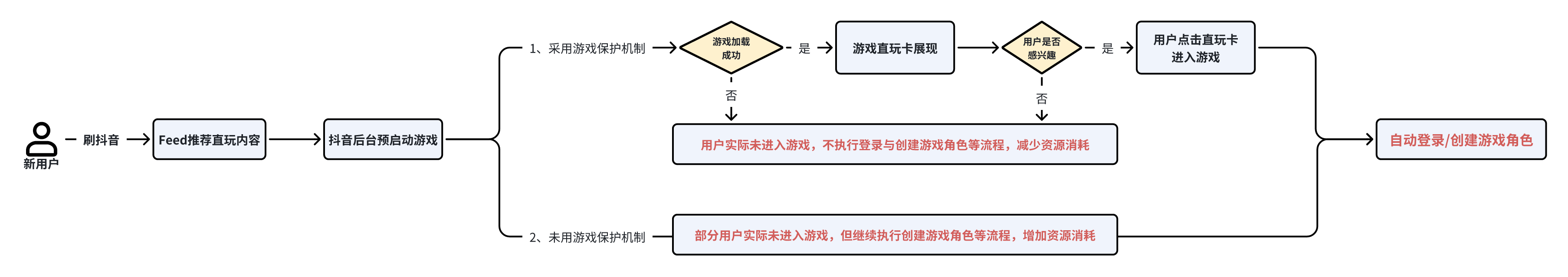 推荐流直出能力采用预加载技术,在游戏尚未展示和用户未进入游戏前 ,属于潜在用户阶段,若开发者游戏侧在此阶段提前进行角色创建等操作,会造成大量非真实用户的请求和资源占用,影响服务器稳定及游戏生态。