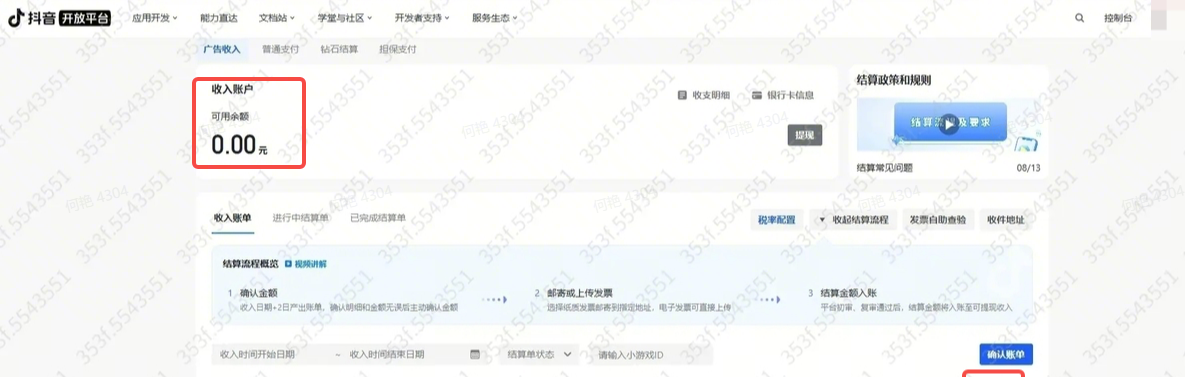 企业开发者需上传发票,个人开发者无需发票,直接确认账单后,结算单金额入账