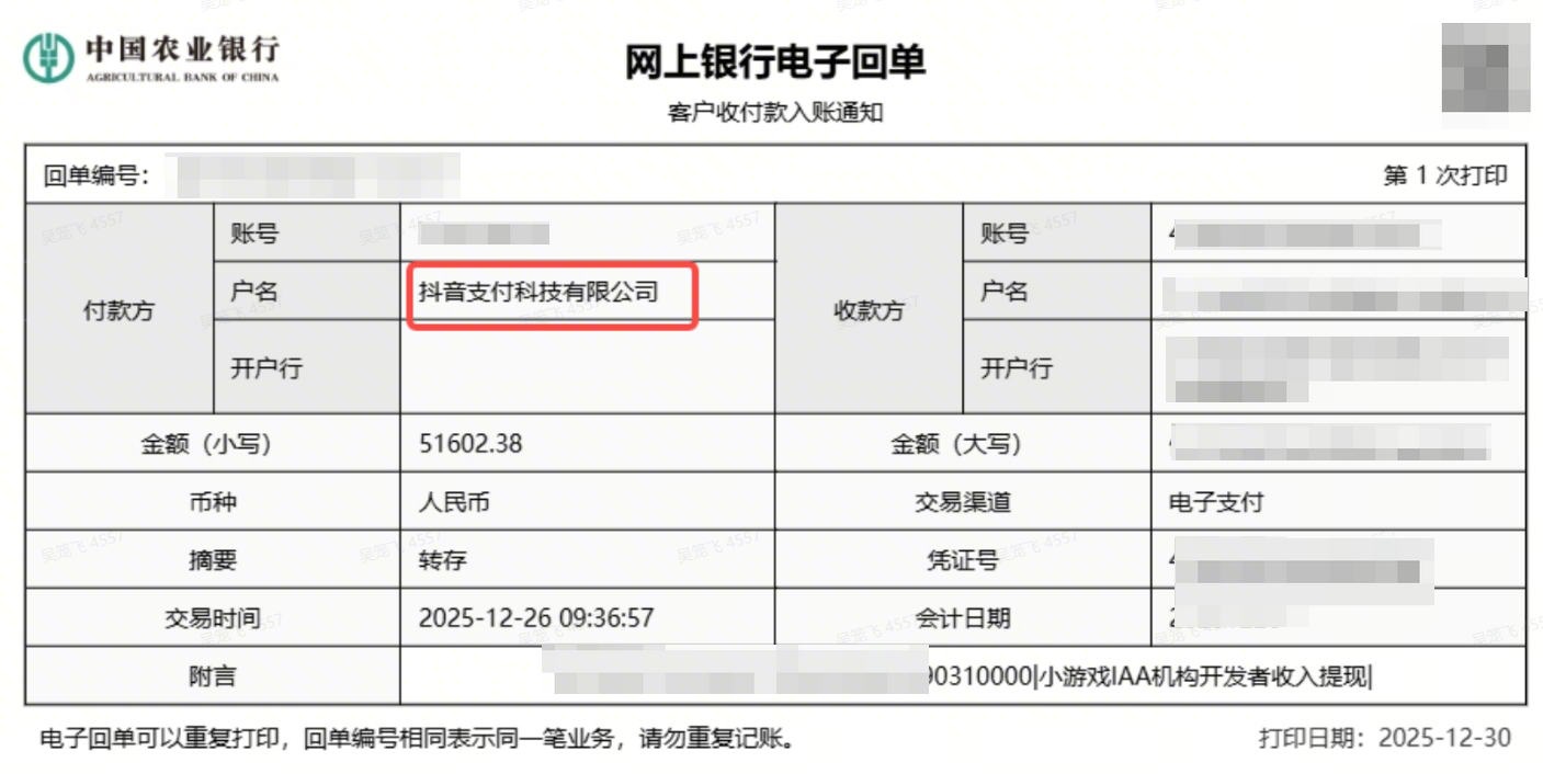 本指南适用于所有在抖音开放平台注册并开通小游戏收入结算功能的企业或个人开发者,包括: