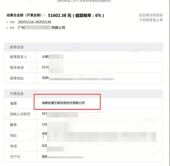 - 12.我的结算单付款方为成都巨量引擎,但银行打款回单为北京抖音支付科技有限公司,打款主体与开具发票主体为什么显示不一致?
