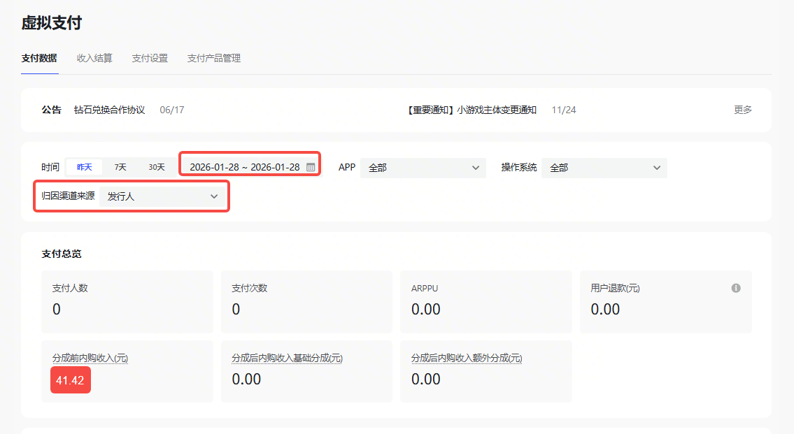 钻石结算 | 小游戏钻石结算收入明细、发起入账明细、钻石结算账户余额 | IAP/IAAP小游戏(钻石结算) | |