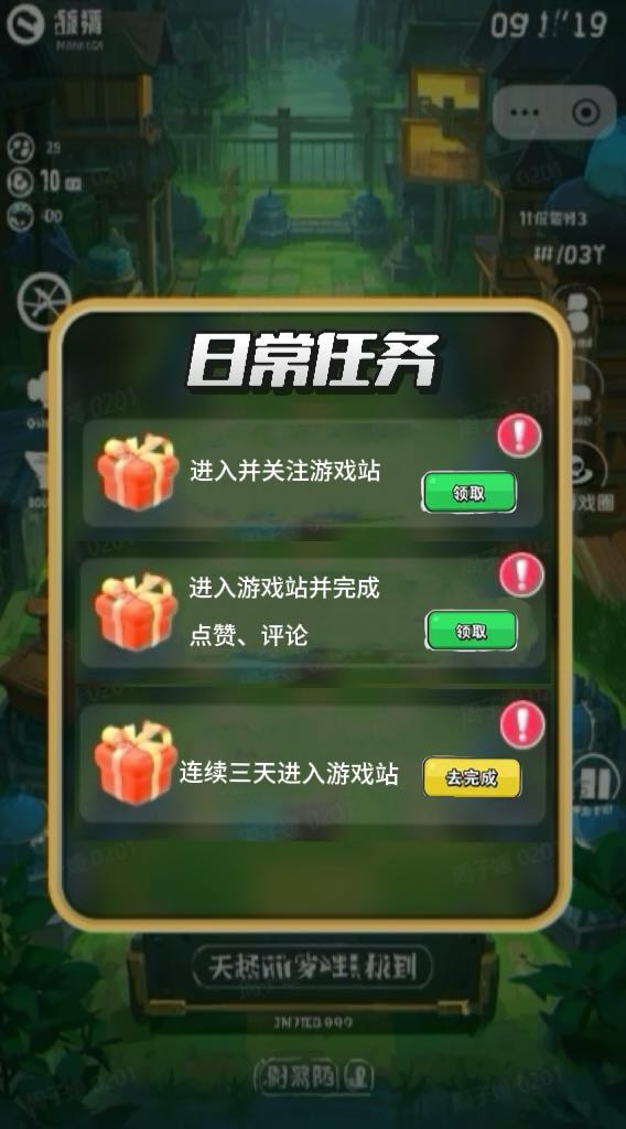 | 示例:游戏主界面设计一级固定入口,冷启期培养用户点击习惯,开发者可自由设计 | 示例:一次性奖励吸引,吸引新玩家。进入游戏站并点击关注,可获得相对高阶奖励,游戏站icon、名称可做成奖励样式 | 每日任务:每日进圈完成点赞/评论/转发等任一互动行为,游戏内可获得对应奖励; 连续任务:连续x日进入游戏站签到,游戏内可获得对应奖励 | 示例:游戏内拍脸图结合游戏站首页链接跳转进入,首次/重要节点信息与激励。 |