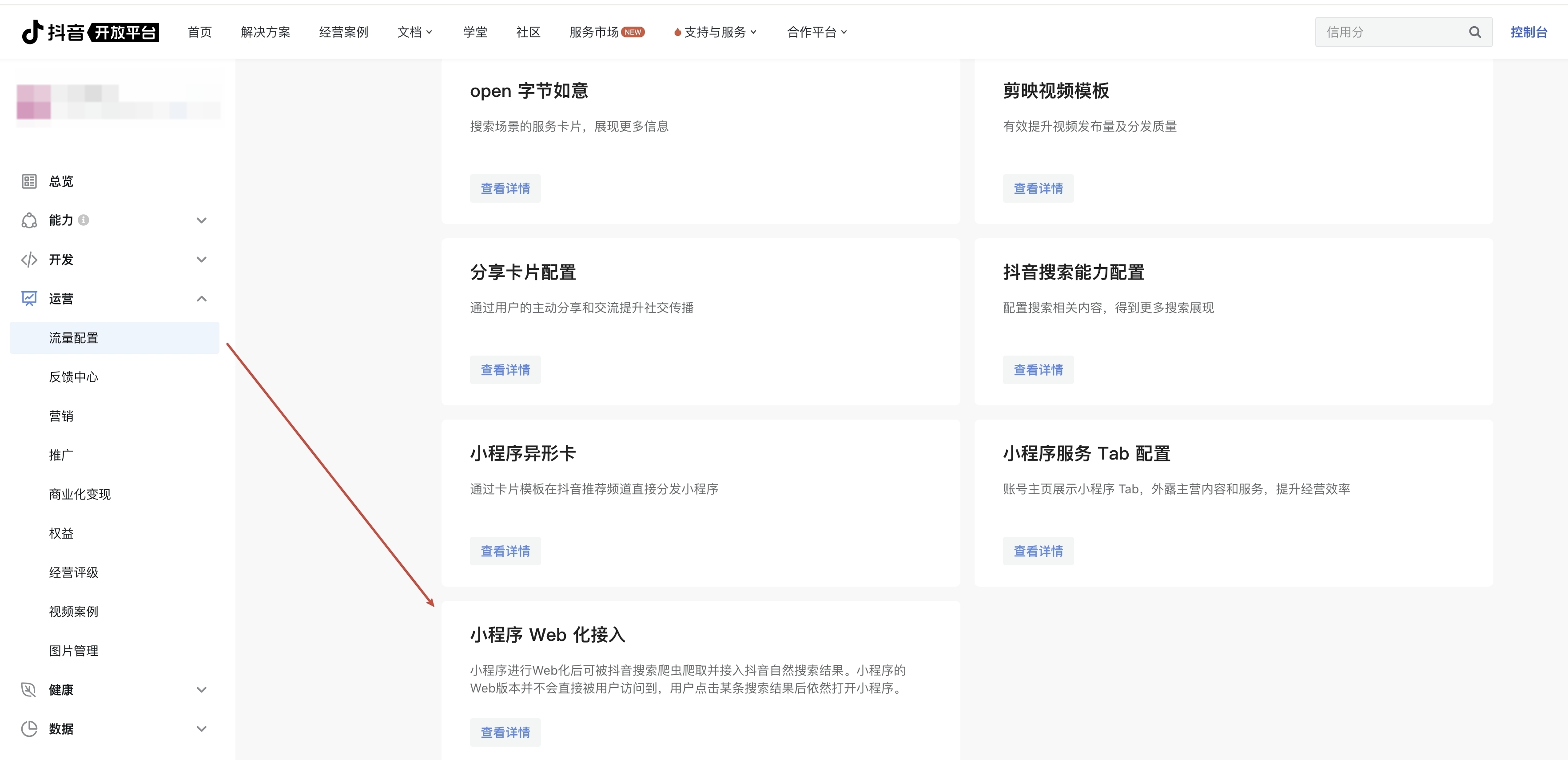 为更好实现小程序丰富内容的呈现,提升小程序在抖音生态中的经营能力,平台2024年5月21日正式上线「小程序Web化」能力,通过接入web化能力可以实现平台对小程序内页面信息的获取,进而实现小程序内页面内容在搜索场景自然搜索结果的展现,从而有更多机会获取更多曝光和流量。具体能力介绍及接入说明见:小程序web化能力介绍。