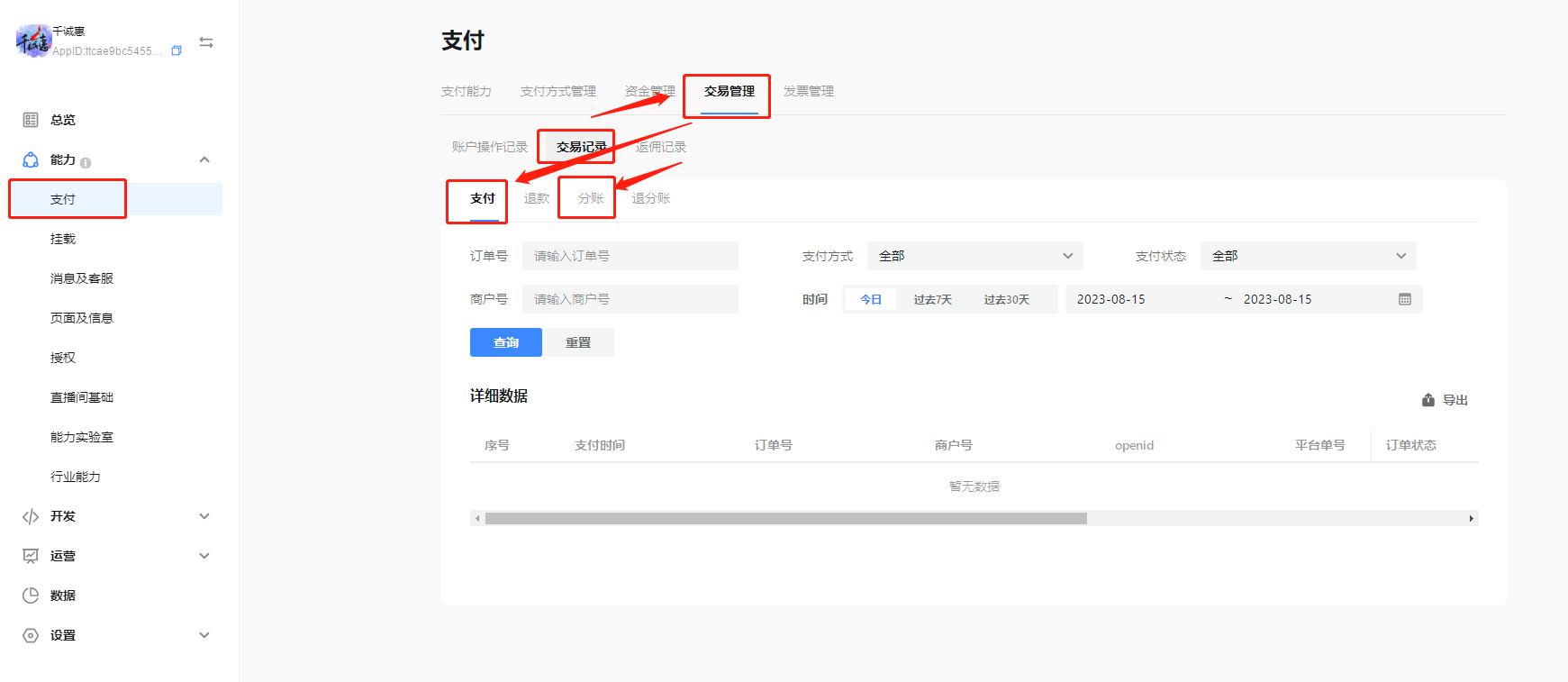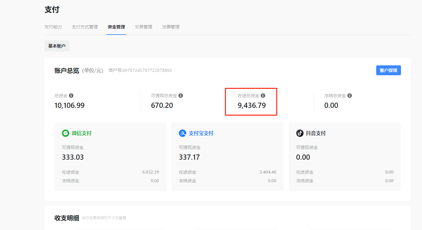 抖音小程序在途资金有钱但是在交易管理--交易记录里面查不到订单数据