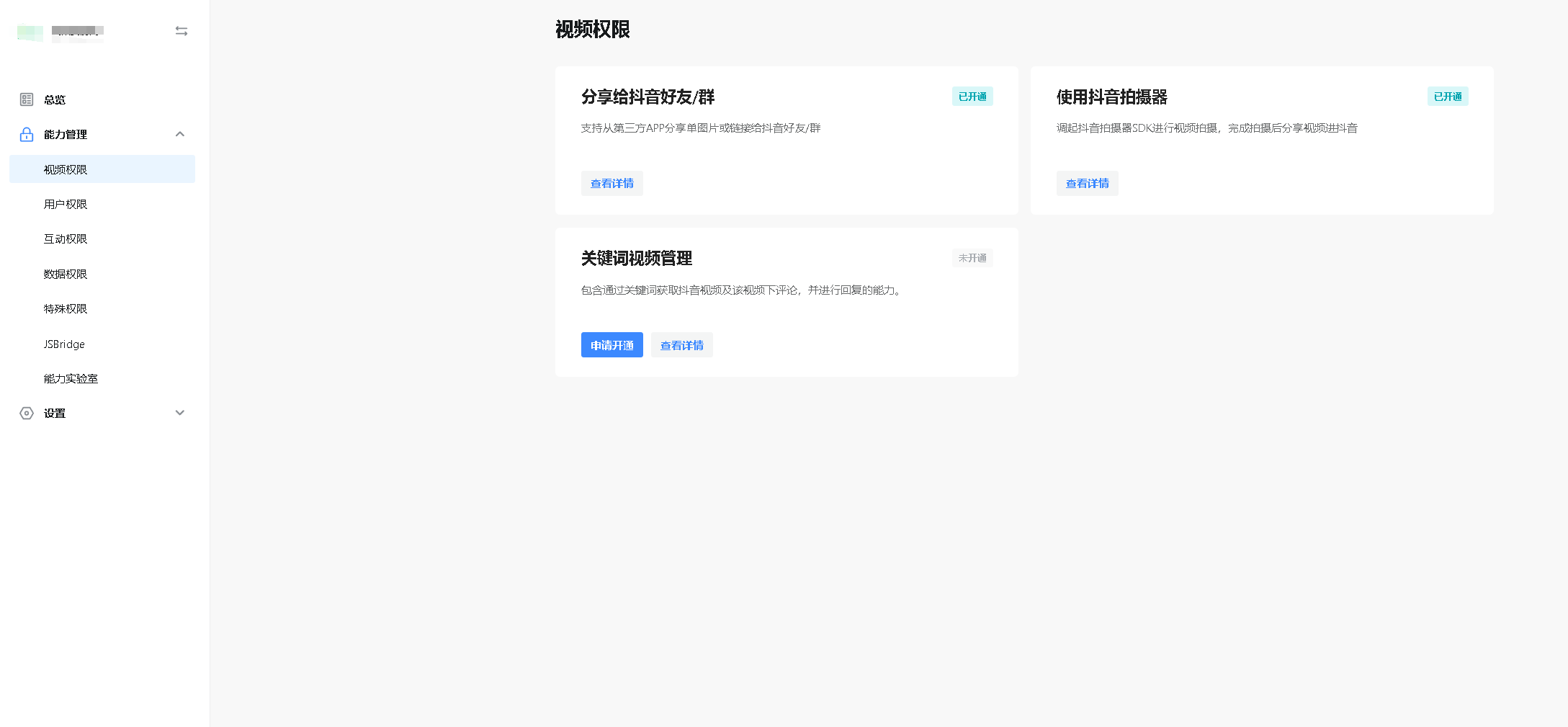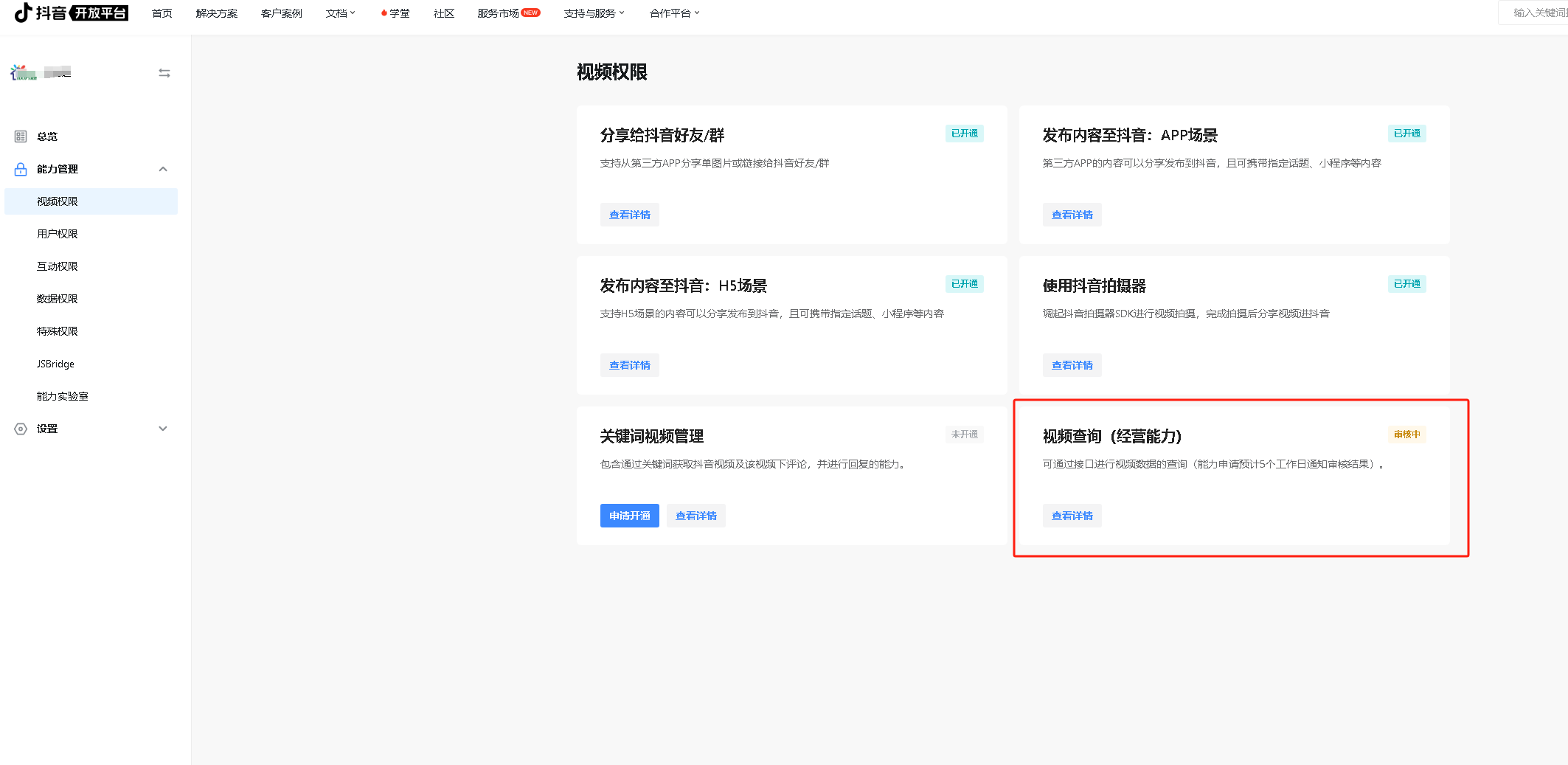 控制台,网站应用里面,能力管理,视频权限里面怎么只有3个功能选项,怎么跟其他的不一样,找不到他们说的那选项!