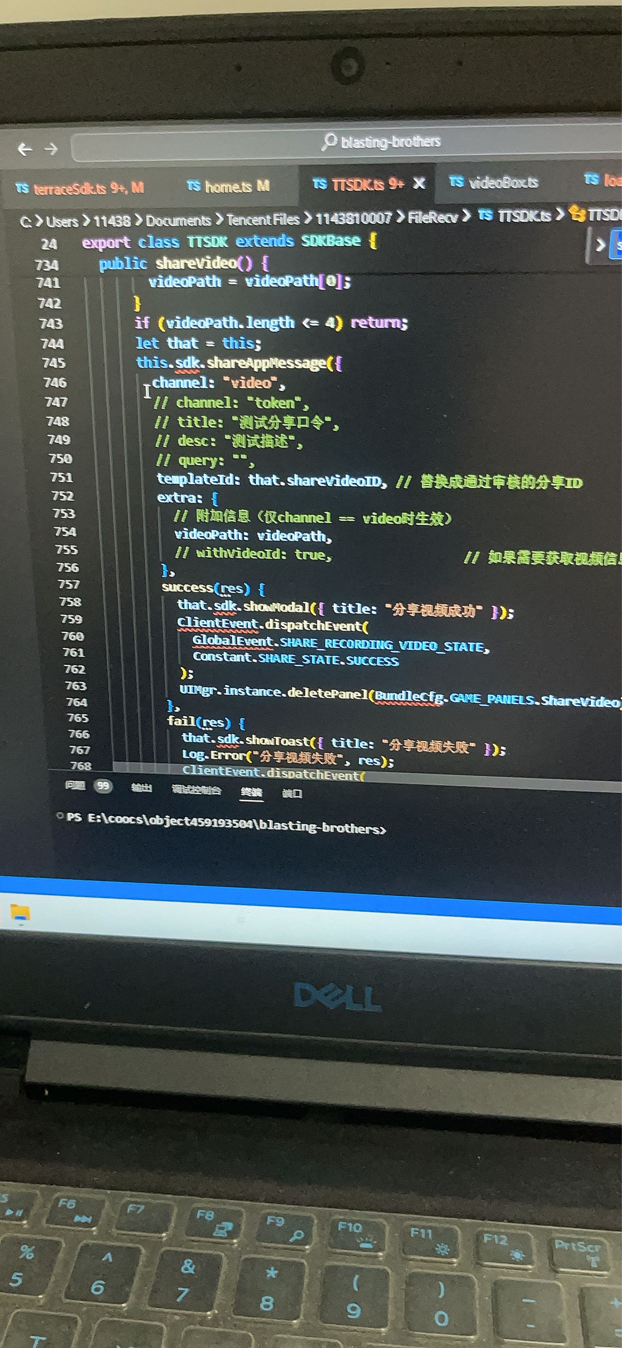我们想达到的效果是,在游戏结束时出现分享视频的界面,点击分享按钮后直接将本次录屏内容发布到对应玩家抖音账号的作品栏内但接入后总是报错,不知如何解决