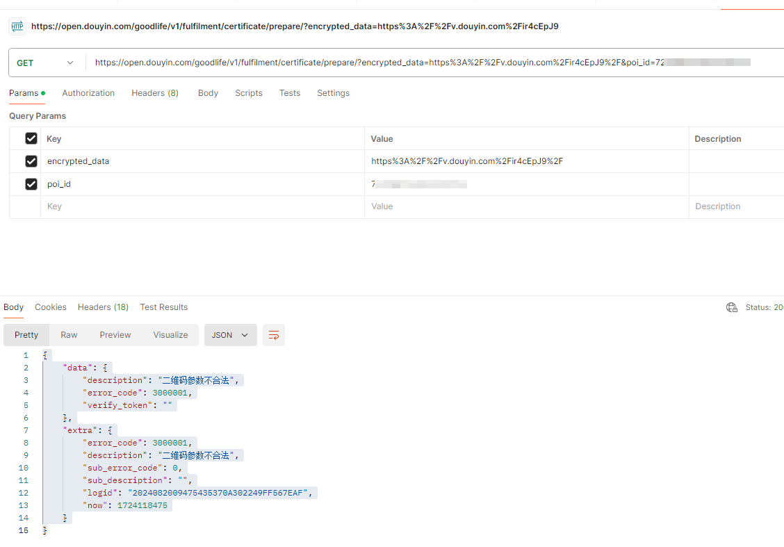 验卷准备接口使用code没有任何问题,使用encrypted_data提示二维码参数不合法,二维码内部url已转义,访问短连接返回404
