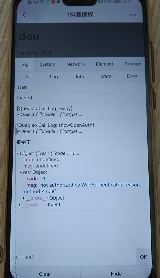 抖音js授权not authorized by WebAuthenticator