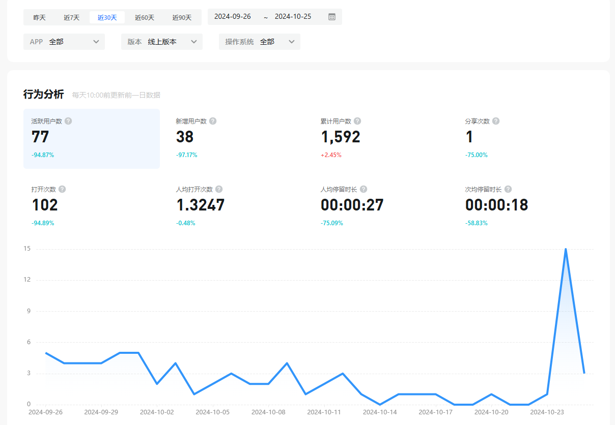 近30天访问人数,之前都是三个5个的,24号那天15个。关键是看24号用户来源,没有数据