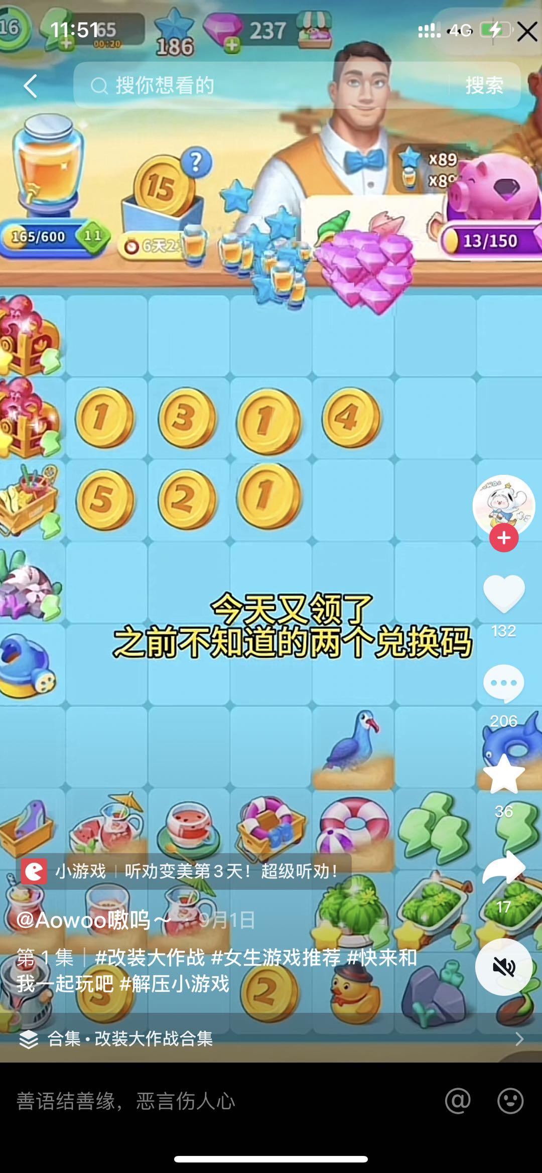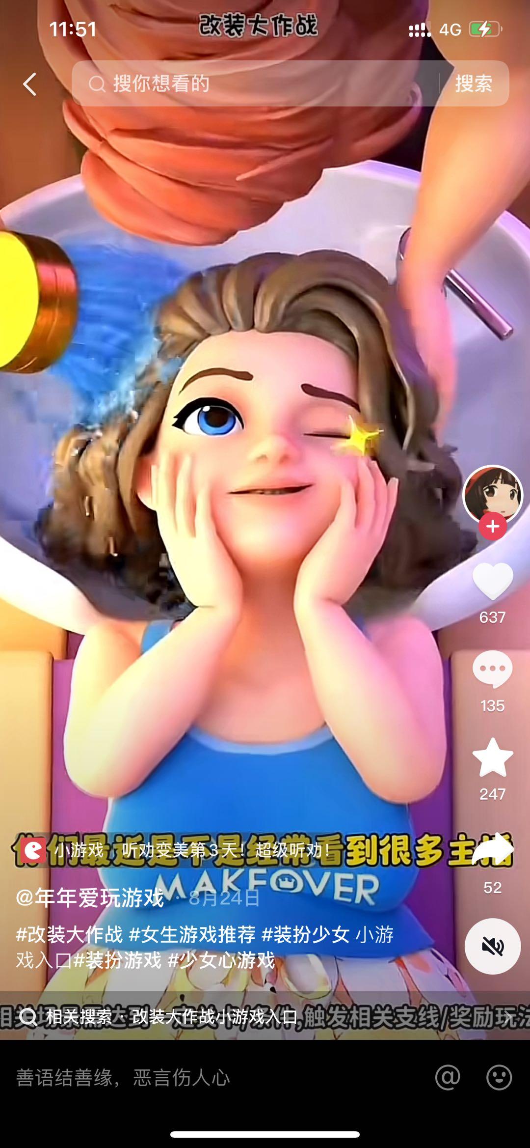 另外在选品环节我们也做过明确的方向,我们的发行团队还处在创业阶段,人力和成本也比较有限,现阶段还是更希望选择回收周期较短的产品,这类的产品可以快速收回成本获得收益,对于像我们一样的初创团队会更加有利。而“改装”这款产品在同类型的iap小游戏来看,是一款偏中度的产品,它的回收周期相比其他重度产品而言回收周期更加短,且产品也足够优质和精品,因此我们锚中这款产品在抖音做直投。
