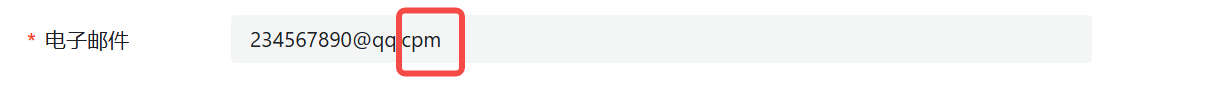 电子邮件 | 邮箱格式错误 | 234567890@qq.cpm | |