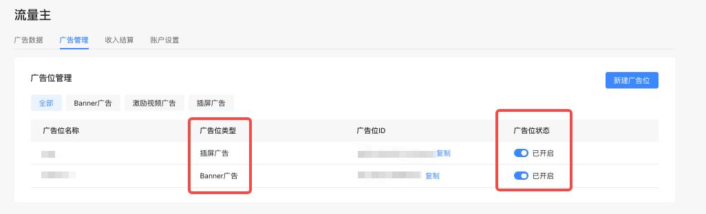 - 插屏广告和banner广告都开通了的游戏,则两种资源位都能配置;