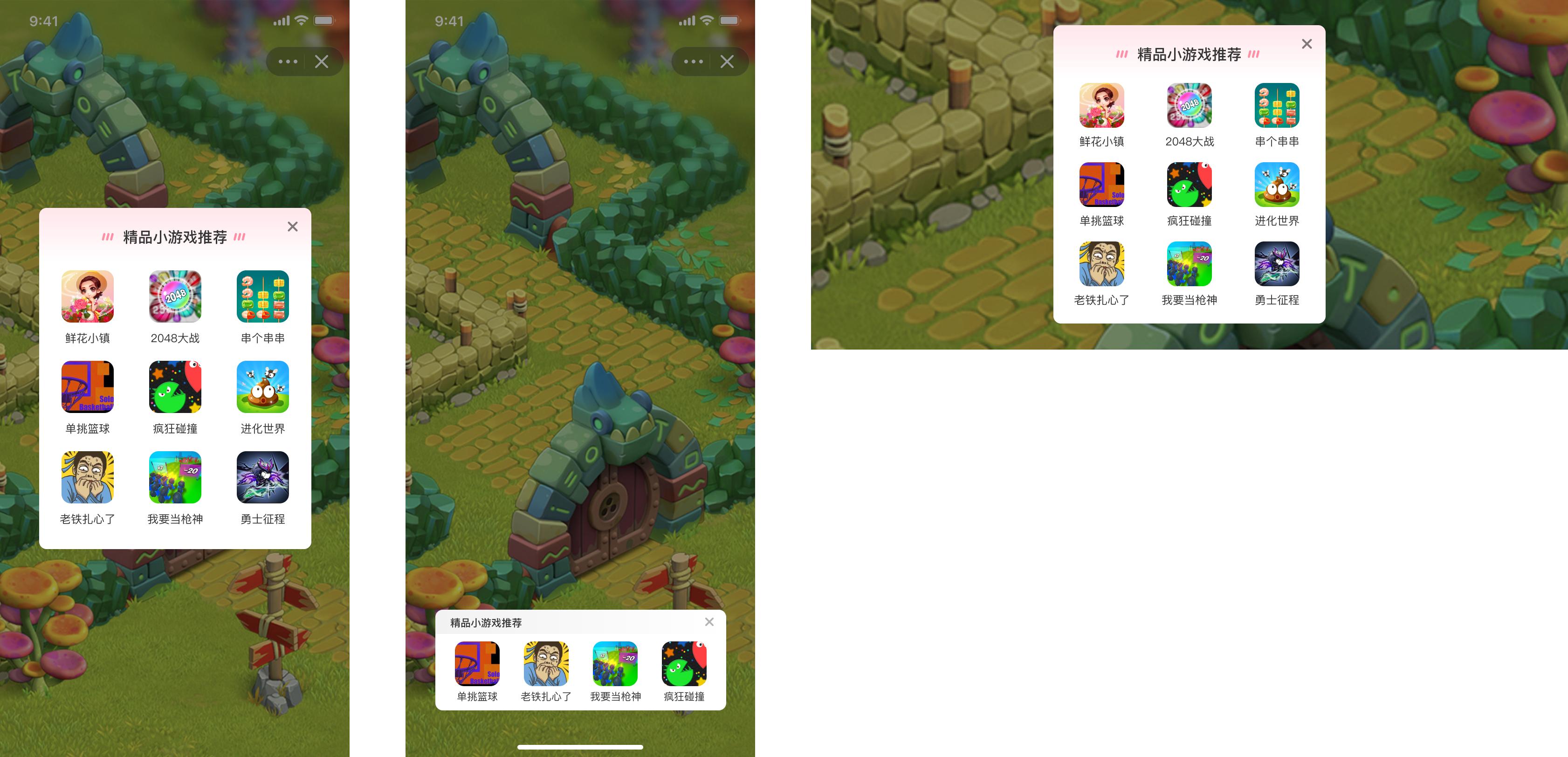 - 当在四宫格中配置的游戏不足4款时,剩余的空格将会展示平台推荐的兜底游戏。