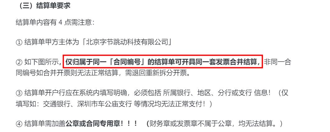 想问清楚一下,之前说一份结算单对应一张发票,后说同一合同编号的明细单才可以开具同一张发票结算,有23张合同编号一样的结算单,可以开具出一张发票嘛?因部分结算单金额过小,不方便开开具发票。