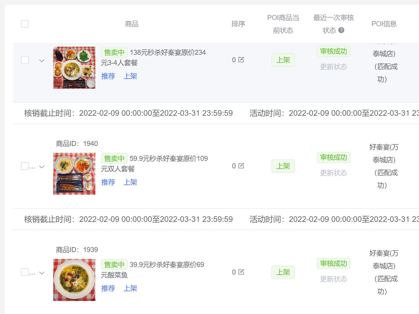 小程序后台匹配的poi是好秦宴万泰城店,但套餐上架后不显示在好秦宴万泰城店,而是显示在牛佳客万泰城店下方了