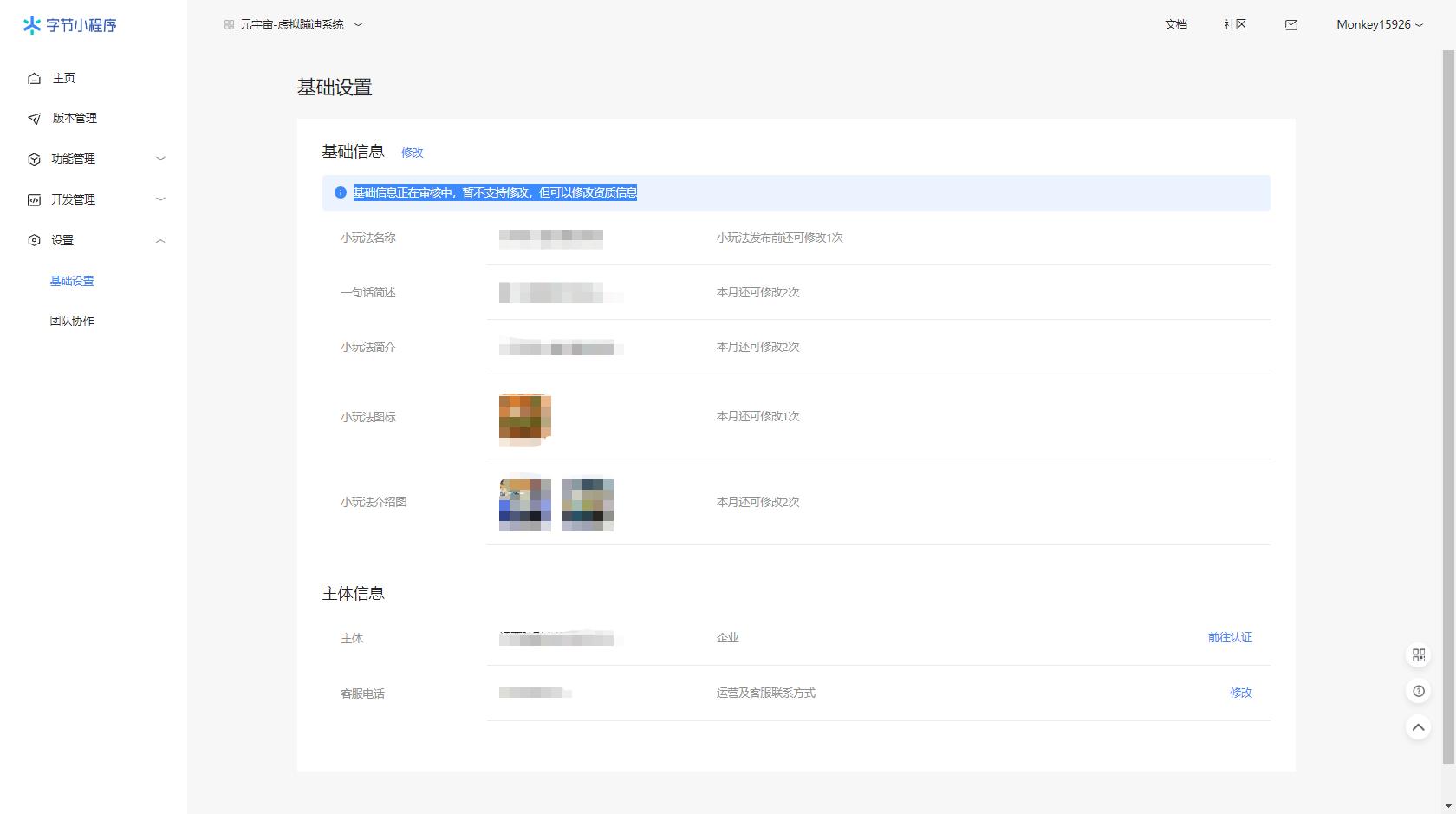 基础信息一直在审核,卡住无法执行后续开发