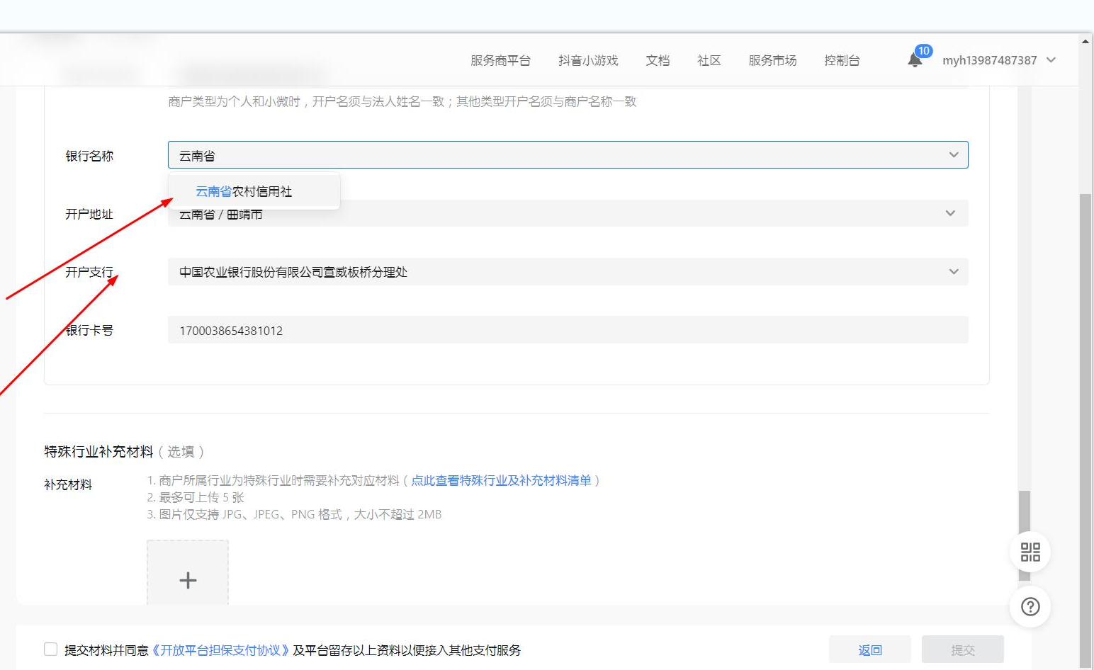 银行名称不能直接搜索点击,只能挨个找才可以点击,开户支行没有对应名称,只有这个中国农业银行才有这个支行名称