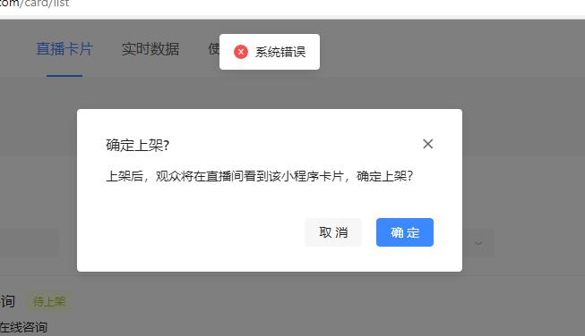 并且直播中途也不能上架,提示系统错误。