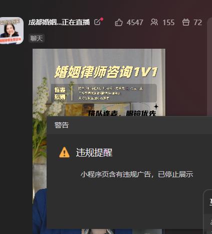 我的小程序上架一段时间了,最近直播挂载,每次几分钟就提示违规就掉了。但是页面已经再三检查确保没有任何违规的东西。而且也没有给出到底哪里有问题。