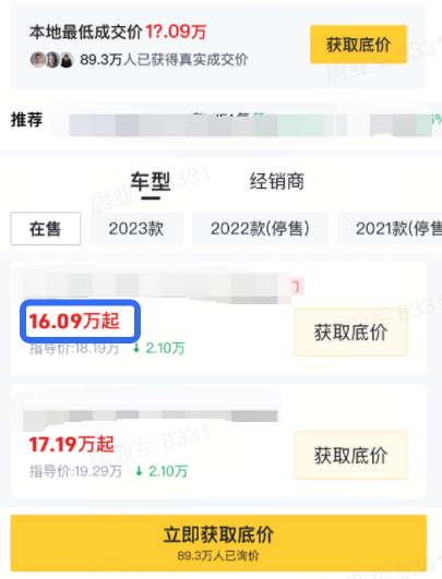 示例1:视频描述价格为6.99万,但落地页报价价格为16.09起,差异明显~