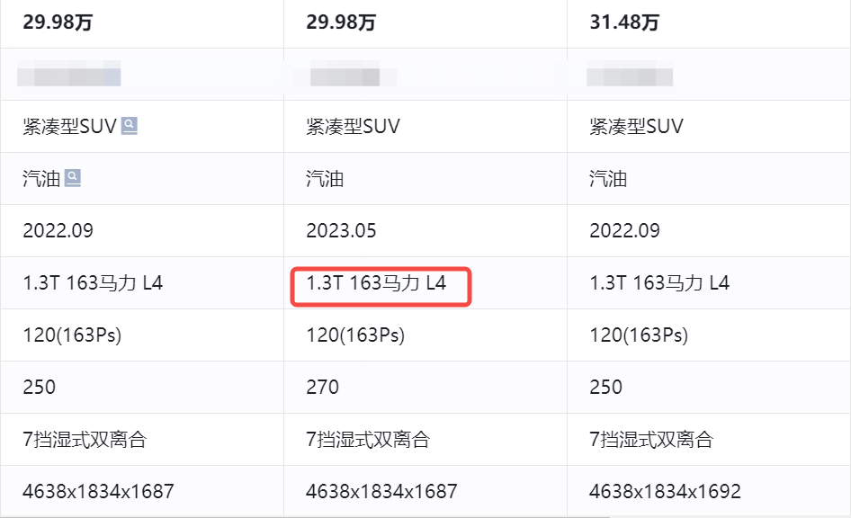示例2:视频描述该车动力为2.0T,但落地页参数为1.3T,存在差异~