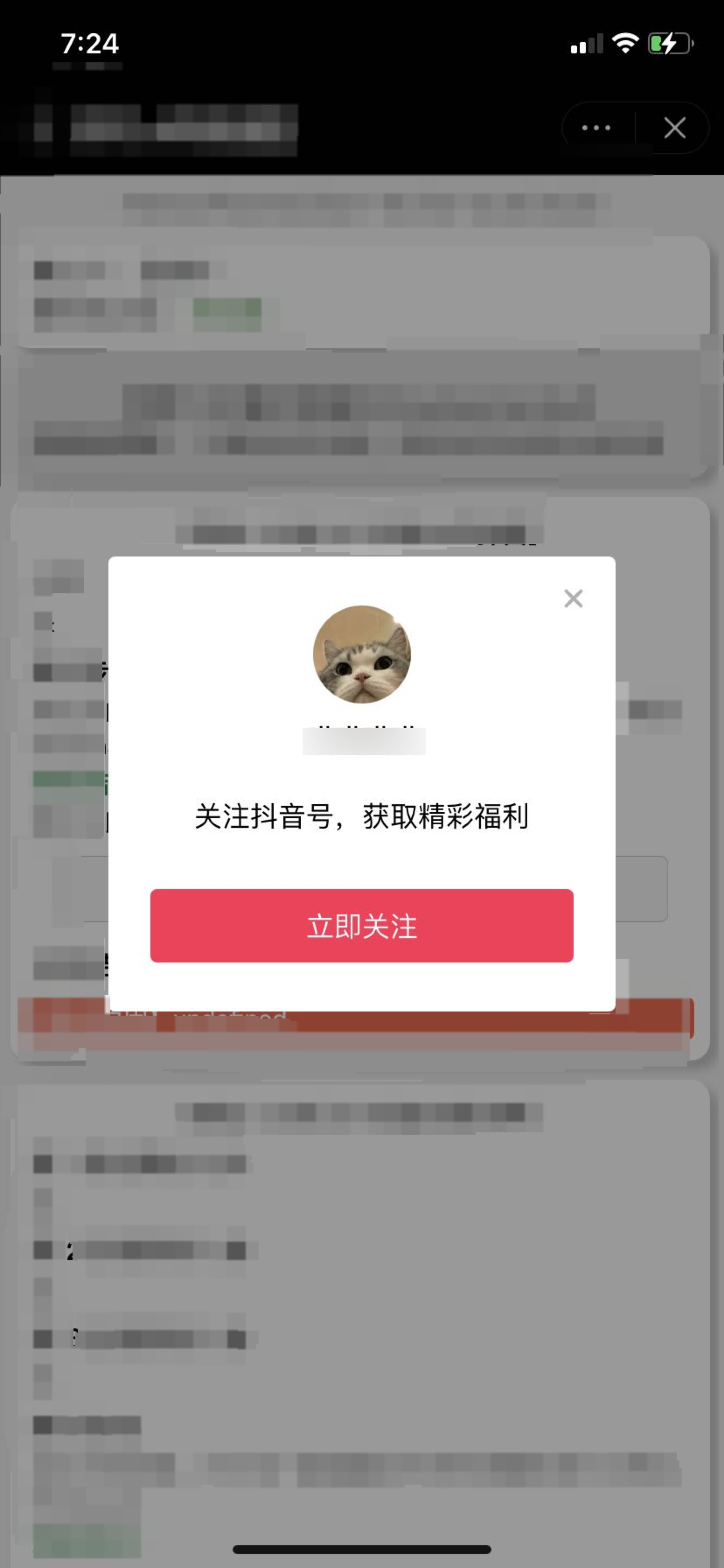 该能力可打通小程序与抖音号之间的关系,开发者可实现将小程序用户转化为抖音号粉丝,并通过抖音号持续的内容运营实现“小程序-抖音号-视频”闭环,最终使抖音号和短视频成为小程序强有力的裂变方式。在小程序内点击「关注抖音」,可通过“显示弹窗直接引导关注”或者“跳转到抖音号主页引导关注”来实现。