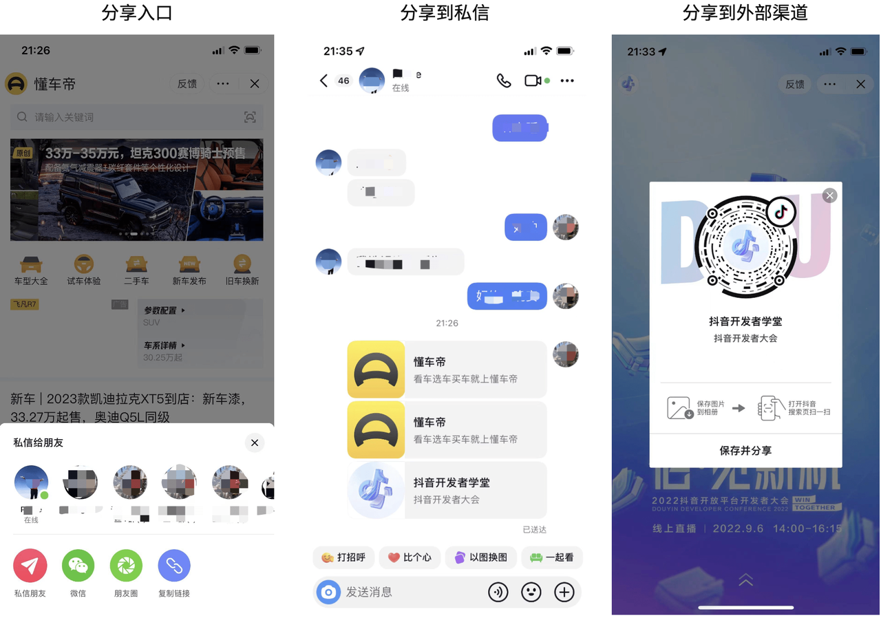 通过对大量软件服务商类小程序的流量分析,我们也发现,分享能给软件服务商类小程序带来较多的流量。分享能力是指用户在小程序内可选择将小程序分享给好友,分享的方式支持链接、图文、口令等多种方式。
