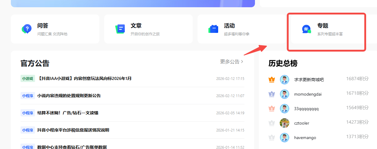 我们建议在内容创作时,可以选择当前你在平台的真实体验情况或者问题解决经验来展开,这类内容往往更容易让你有创作思路,其他开发者朋友们也更愿意与你互动交流。如果仍没有创作灵感,可以在开发者社群或者平台官方公告中关注平台最近动态。